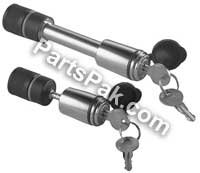 Set includes one 5/8in. diameter hitch lock for Class 3 and 4 receiver-style hitches and one trailer coupler lock with 1/4in. diameter pin and 1/2in. span. Keyed alike. From the manufacturers of the original Deadbolt lock for hitches and trailers. Locks are double nickel chrome-plated for maximum corrosion protection. Features a patented, rugged, pick-proof screw-and-lock mechanism for total security. Easy key insertion and removal. Covered key opening and nonslip pin grip. U.S.A. Type of Lock: Hitch and Coupler set, Diameter (in.): 5/8, 1/4, Includes (qty.): 1 set